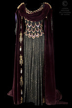 Description : Long velvet dress with handmade embroidered stones and golden details
